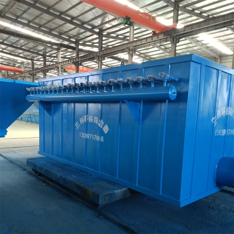 除尘器由立柱 、灰斗 、进风装置 、 中箱体 、上箱体 、滤袋组件 、正压泄爆装置、 喷吹 系统 、离线装置 、旁通装置等组成 。整套除尘器还包括平台扶梯 、防雨棚 、 防雨罩和现场电器控制系统等 。